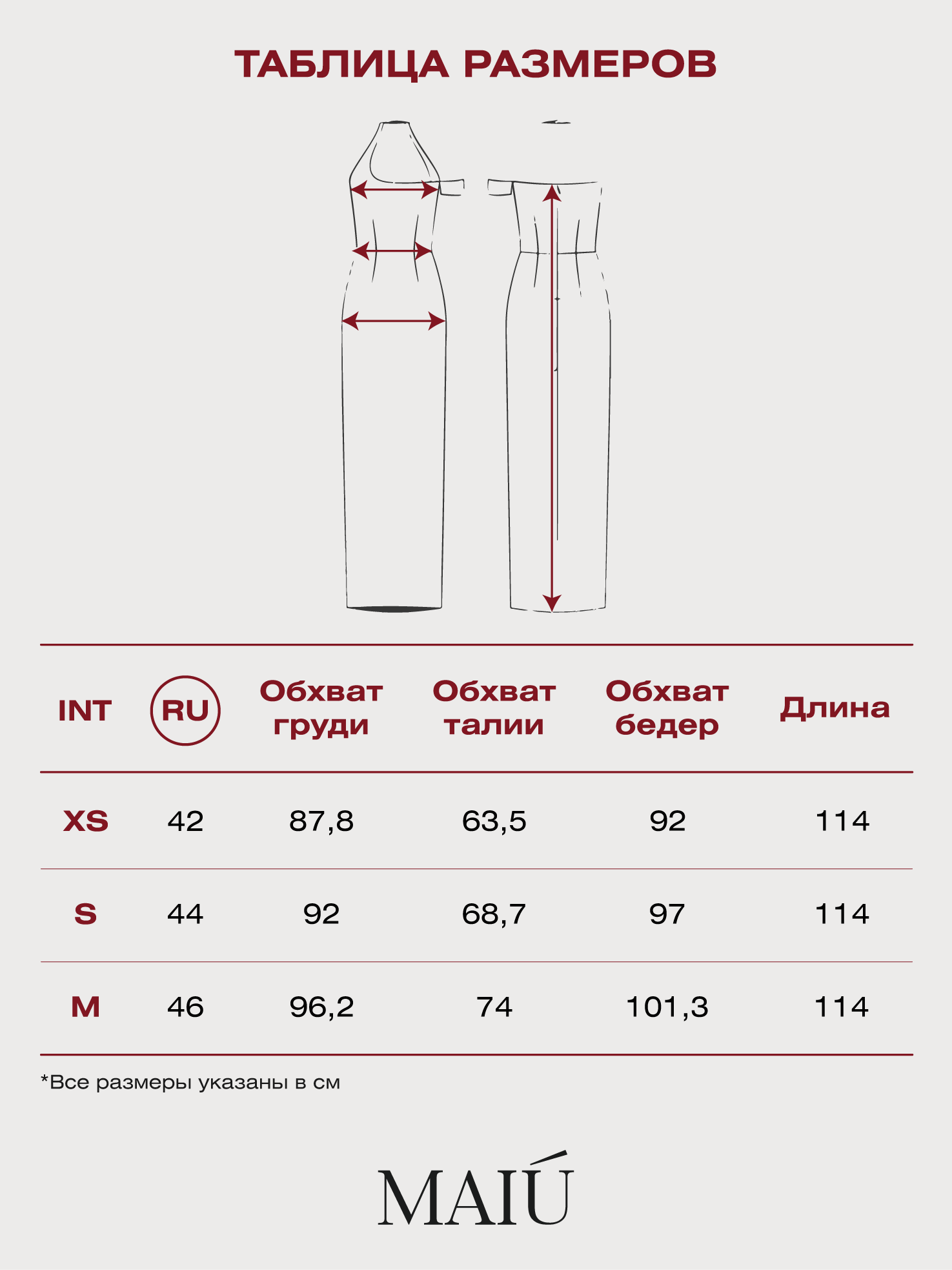 Таблица размеров