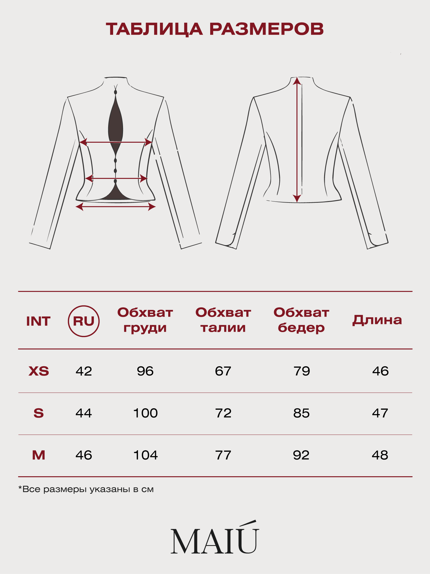 Таблица размеров